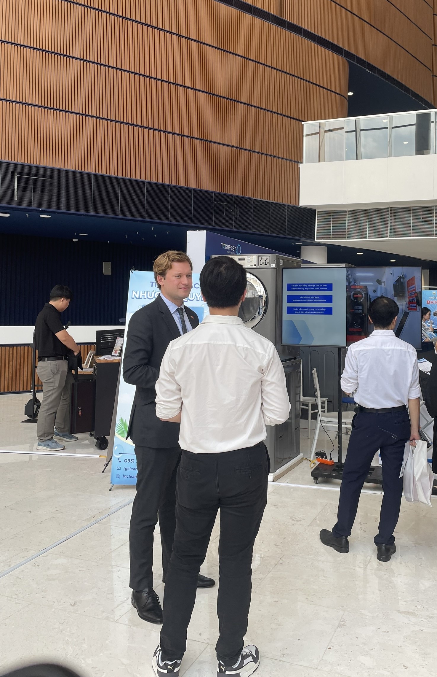 Gian hàng CleanPro trở thành điểm nhấn của khu triển lãm với chủ đề “Giặt sấy thông minh – Kinh doanh tự động – Đầu tư hiệu quả”, thể hiện tầm nhìn tiên phong trong lĩnh vực giặt sấy tự động 24/7 tại Việt Nam.